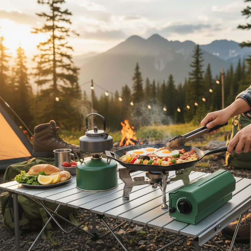 🏕️ Ultra-compact fold-flat design for easy packability 🔥 One-touch ignition delivers instant flame in any wind ⏱️ Quick-boil burner gets water ready in under 3 minutes 🔒 Magnetic lock for rock-solid cooking stability